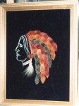 Art is always evolving making new creations. So moosetufting flowers was fun and pretty but needed to challenge the work of art. Doing faces as one of my trademark creations and was a good feeling as I never saw it anywhere else. The most creative picture came from teaching native language in school. Needed to do colors and thought of the Chief headdress. Once the design was figured out, the results was astonishing. From there the next creation was women faces but had to figure out the braiding. Braided headbands with the free flowing hair or braids. Next creation was the woman sitting there looking up which I like best, a full body form. Another good picture was the generation picture using three ladies – daughter, mother, and grandmother. The challenge there was making the lady look older but it turned out really well. The look of three dementional still comes through. It was the hardest to do.
